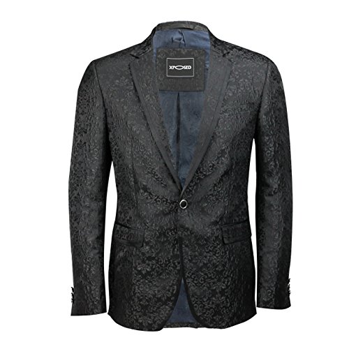 Xposed offer Mens Vintage Self Paisley Print Slim Fitted Jacket Italian Designer Style Smart Casual Blazer [Black,Chest UK 40 EU 50]. This awesome product currently limited units, you can buy it now for £81.99, You save -